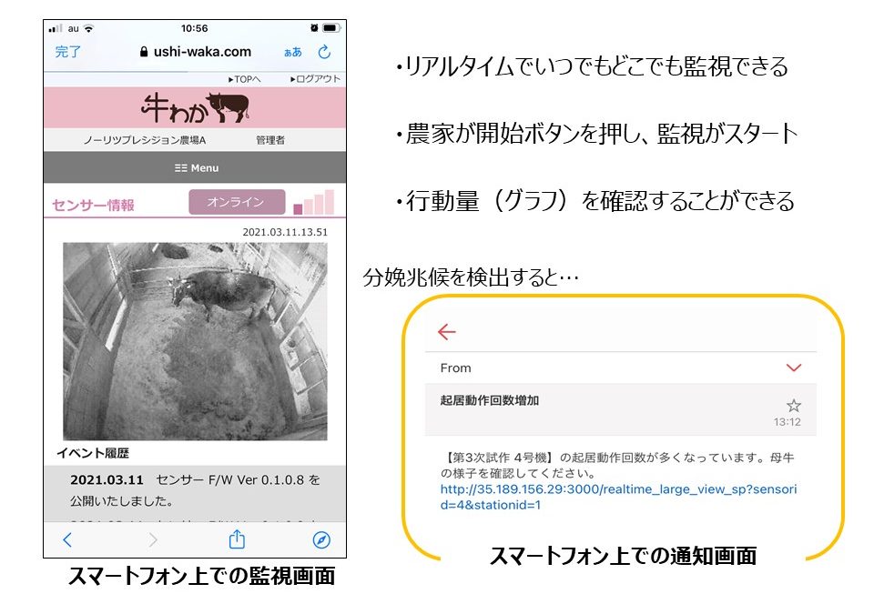 ・分娩が近くなると、飼養者に自動でメール通知