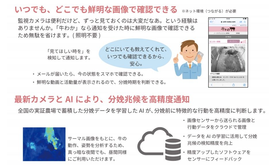 画像認識AI技術を用いて牛の分娩兆候を検出し飼養者へ通知するシステム(製品名:牛わか)