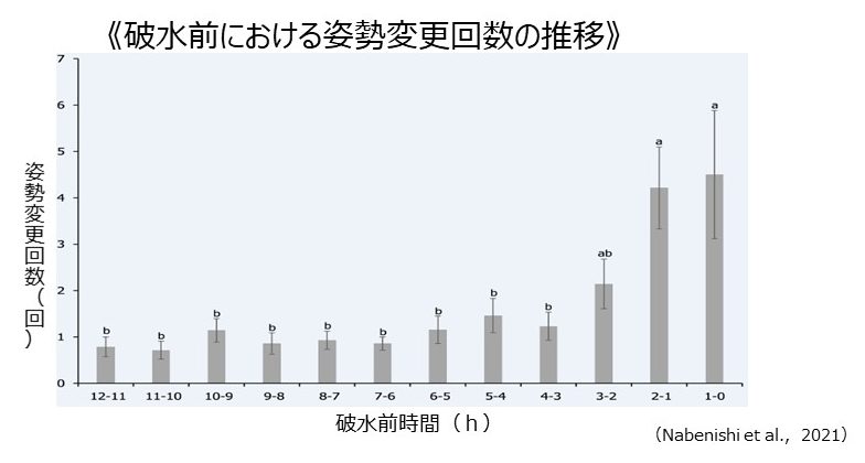 破水が近づくにつれ行動量が増加し、特徴的な動きが観察